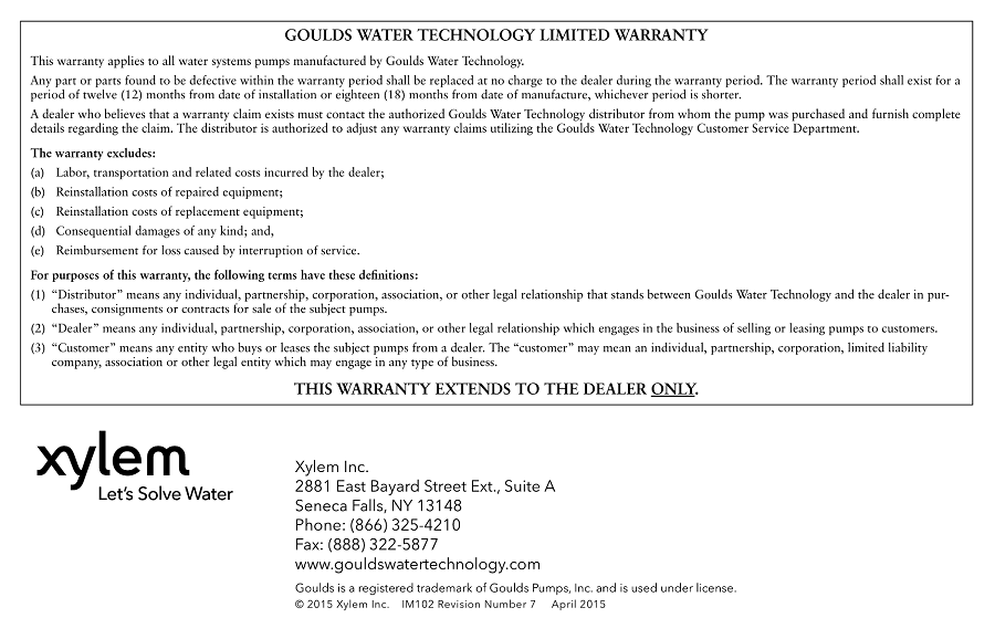 Goulds Warranty